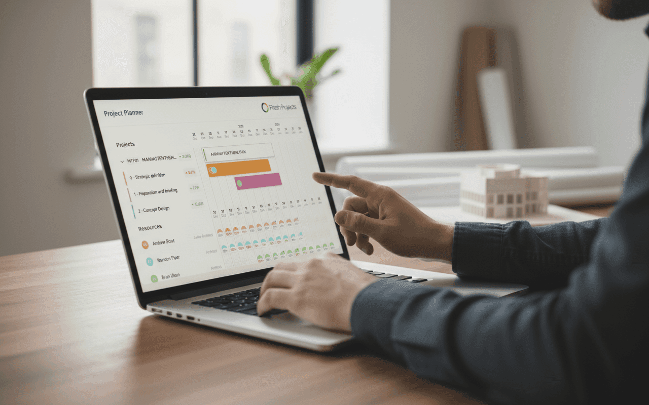 Architects and interior designers. Structural, civil, MEP and environmental engineers. Transport and planning consultants. Quantity surveyors and project managers. If you run projects with time and construction costs, Fresh Projects fits your practice.